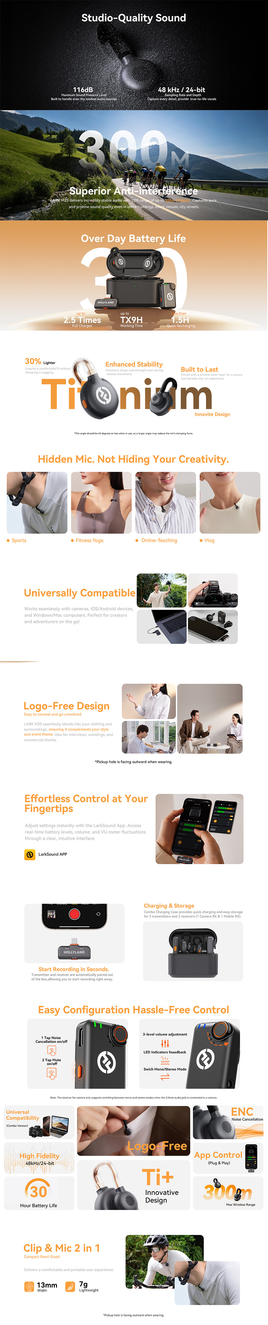 - Transmitter weighs only 7g, lightest wireless microphone in the industry