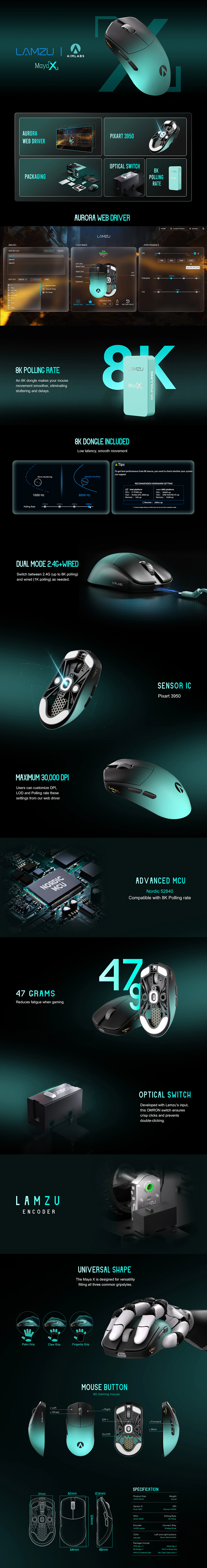 溫馨提示:Maya X 8K 附帶之 8000Hz無線接收器 無法匹配至其他Lamzu滑鼠型號。