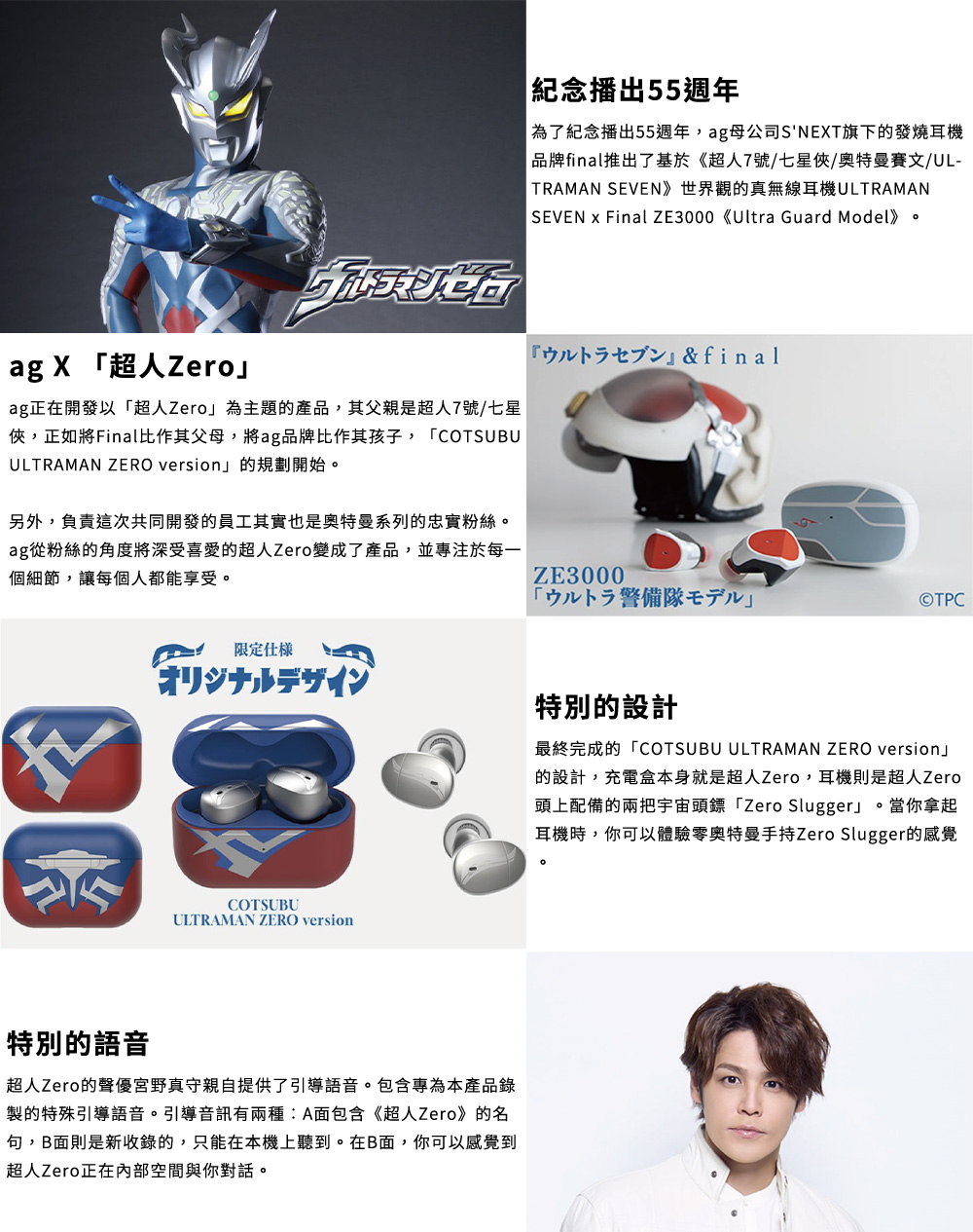 超人Zero 15週年紀念企劃 | 與ag 推出聯乘限量版真無線藍牙耳機 COTSUBU ULTRAMAN ZERO version