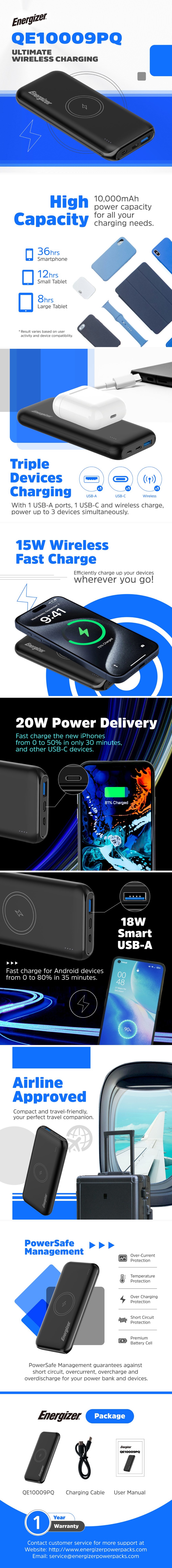 Energizer QE10009PQ 10000mAh 無線行動電源