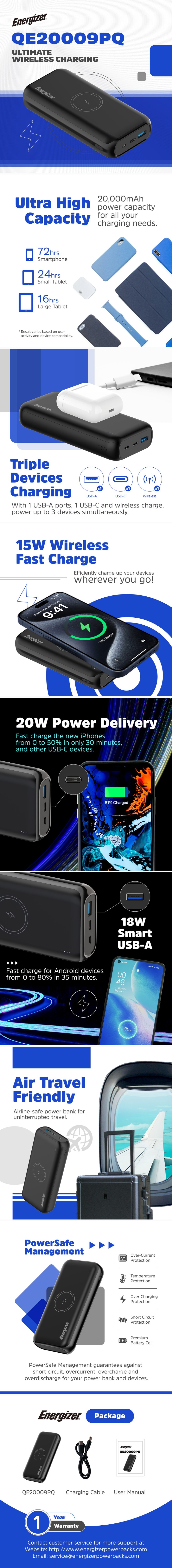 Energizer QE20009PQ 20000mAh 無線行動電源