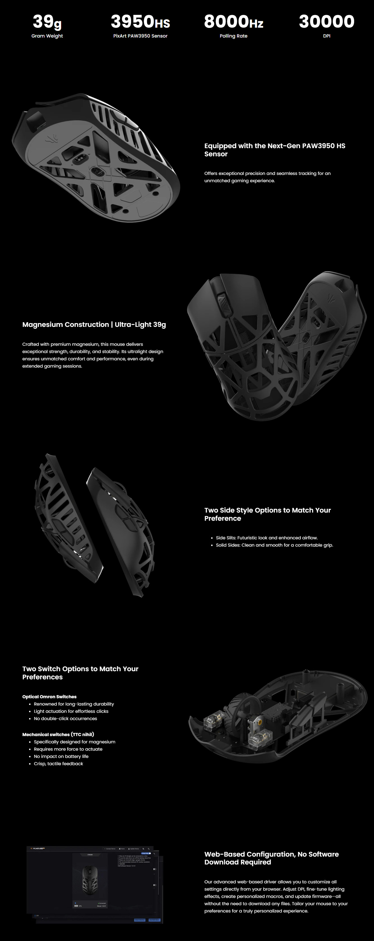 - Polling Rate: 125- 8000Hz(Adjustable)