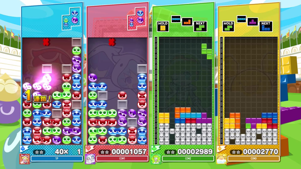 同一個場域由兩人操作!在可遊玩「VS」「氣泡方塊」「派對」3種規則的新模式中,各自需要操作同時掉落的「組合氣泡」或「四格骨牌」喔。彼此溝通進行團隊合作正是勝利的關鍵!兩人同心協力,以大連鎖為目標!