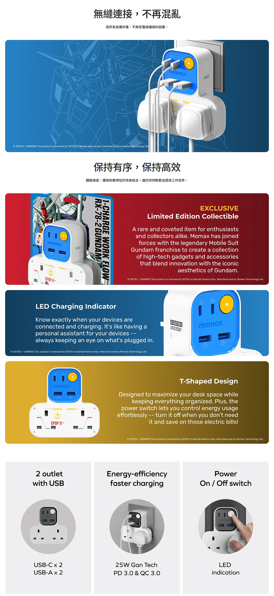 選擇創新;今天就選擇 Momax 1-Charge Work Flow T 型延長線。體驗速度、優雅和實用性的完美結合,提高您的工作效率。