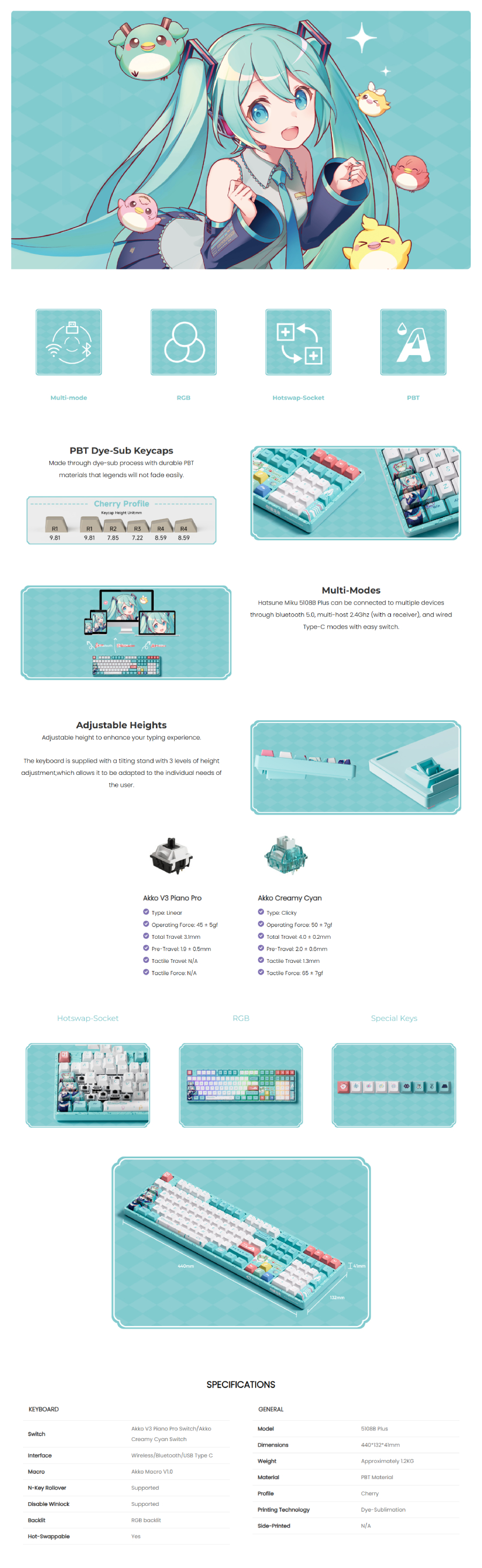 AKKO Hatsune Miku 5108B Plus 鍵盤(Cream Cyan 奶青軸)
