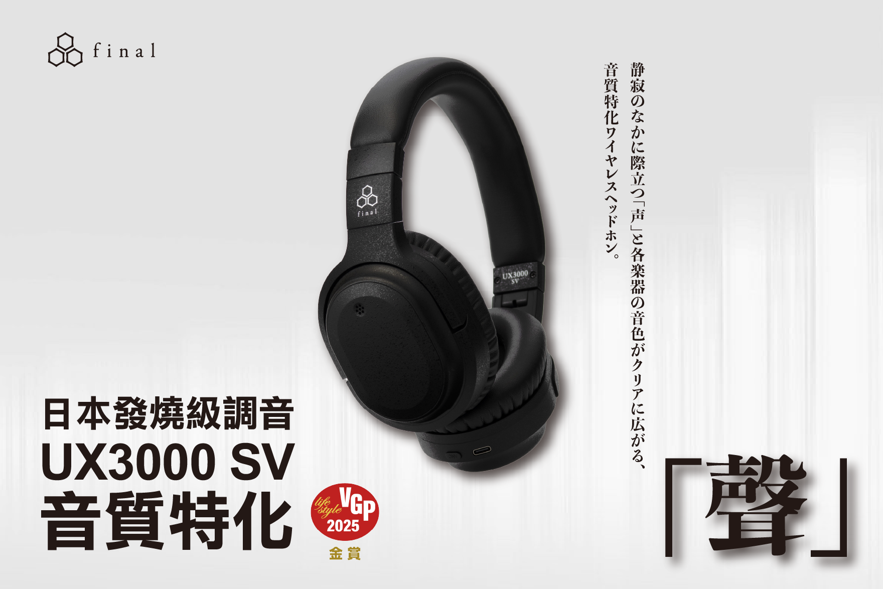 日系發燒級調音品牌 final 推出最新頭戴式無線藍牙耳機UX3000 SV,以專注「聲」的音質為重點,實現以人聲優化為中心的設計。
