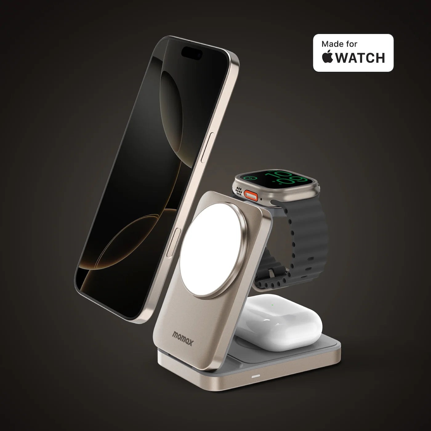 搭載 Qi2 磁吸無線技術 ,提供最高 15W 功率,確保您的設備能夠快速且高效地充電。此充電座支援多種設備,包括 AirPods、Apple Watch 及 Qi2 相容手機 ,為您帶來一站式充電體驗。