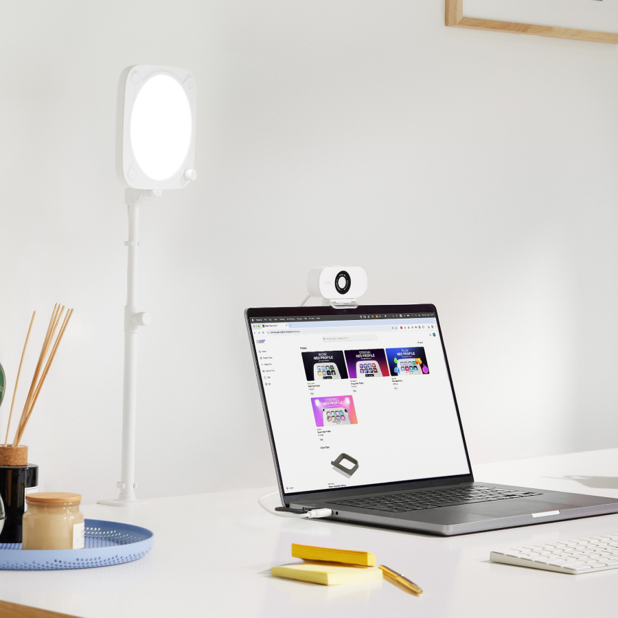 將 Key Light Neo 架高,不再佔用桌面空間。桌面清爽、視線清晰,鏡頭前表現更自在。