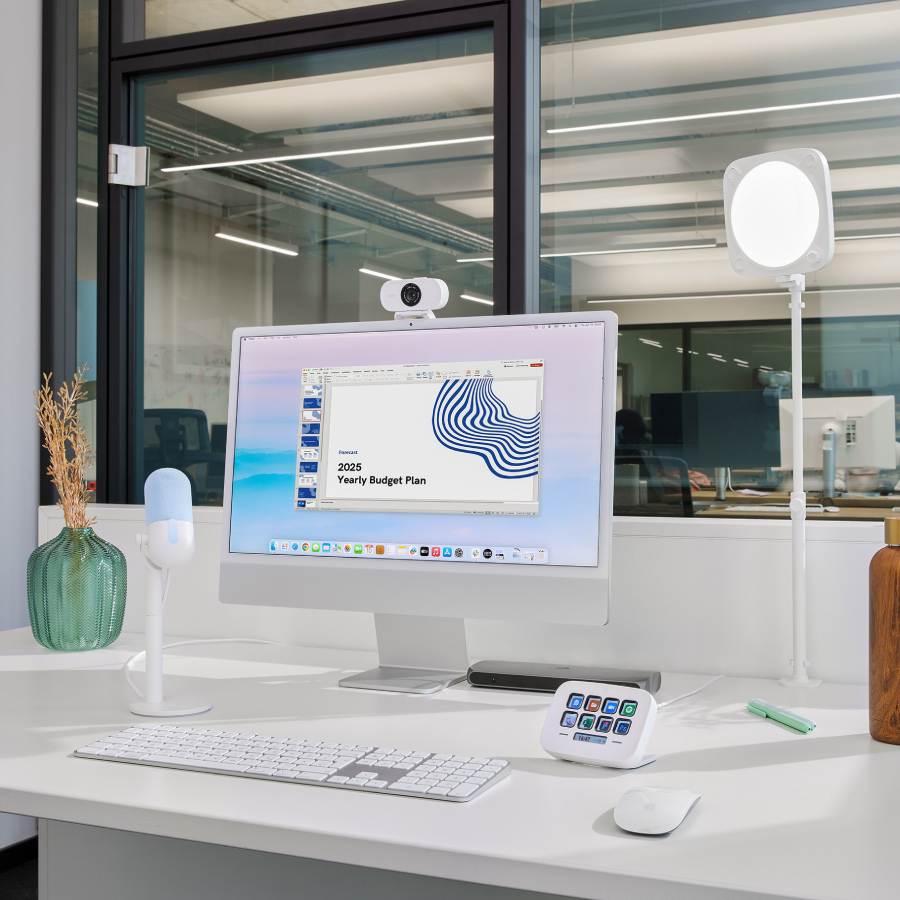 純白設計與你的 Neo 系列完美搭配,讓桌面裝備從燈光到工作流程控制器都色彩一致。