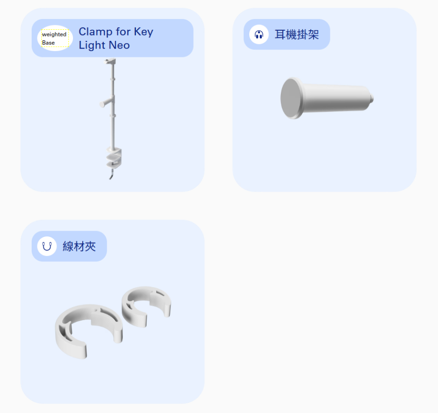 Clamp for Key Light Neo 已預先組裝,另附配件供你調整設定。