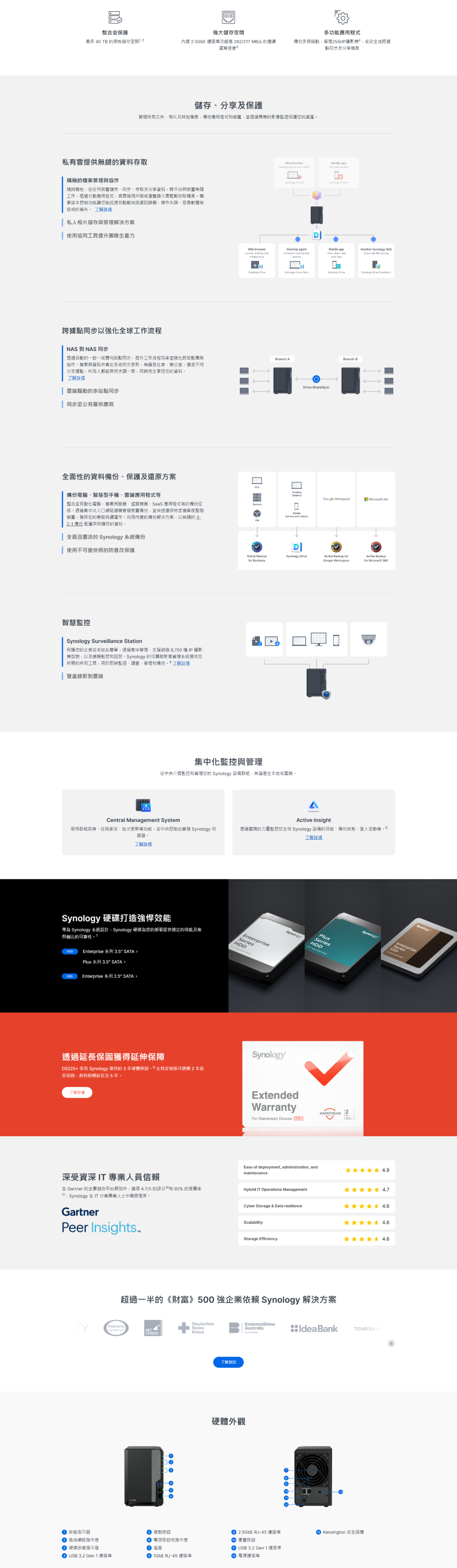 Synology 提供 3 年有限硬體保固,在特定地區可延長至 5 年