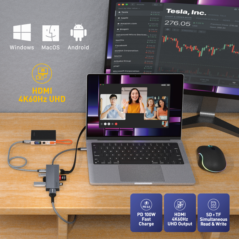 - 支援4K@60Hz, PD100W 快速充電, 5Gpbs 高速傳輸功能