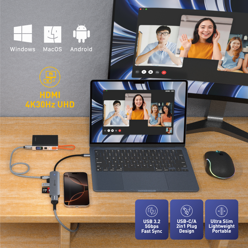 - HDMI支援4K@30Hz, PD100W 快速充電, 5Gpbs 高速傳輸功能