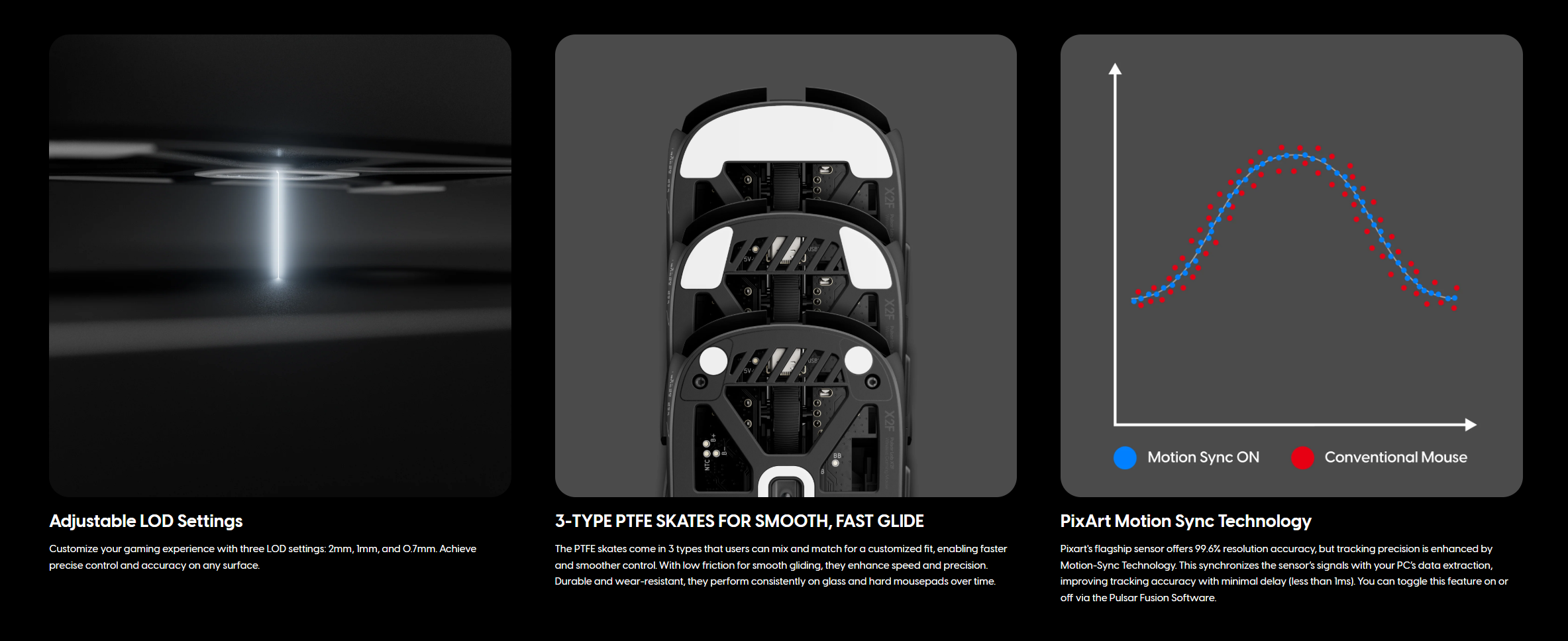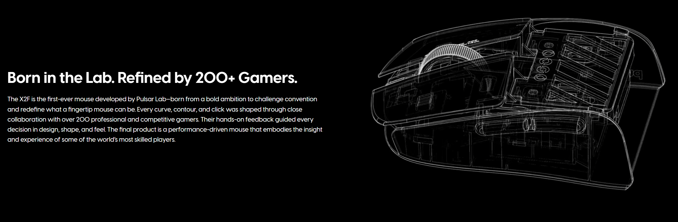 X2F 是 Pulsar Lab 設計與研發的最具實驗性與野心的指尖操控滑鼠,專為超高速、高精度的遊戲體驗打造。透過大膽移除傳統滑鼠的後部結構,X2F 專注於提供極致的速度與精準控制,適合競技玩家使用。