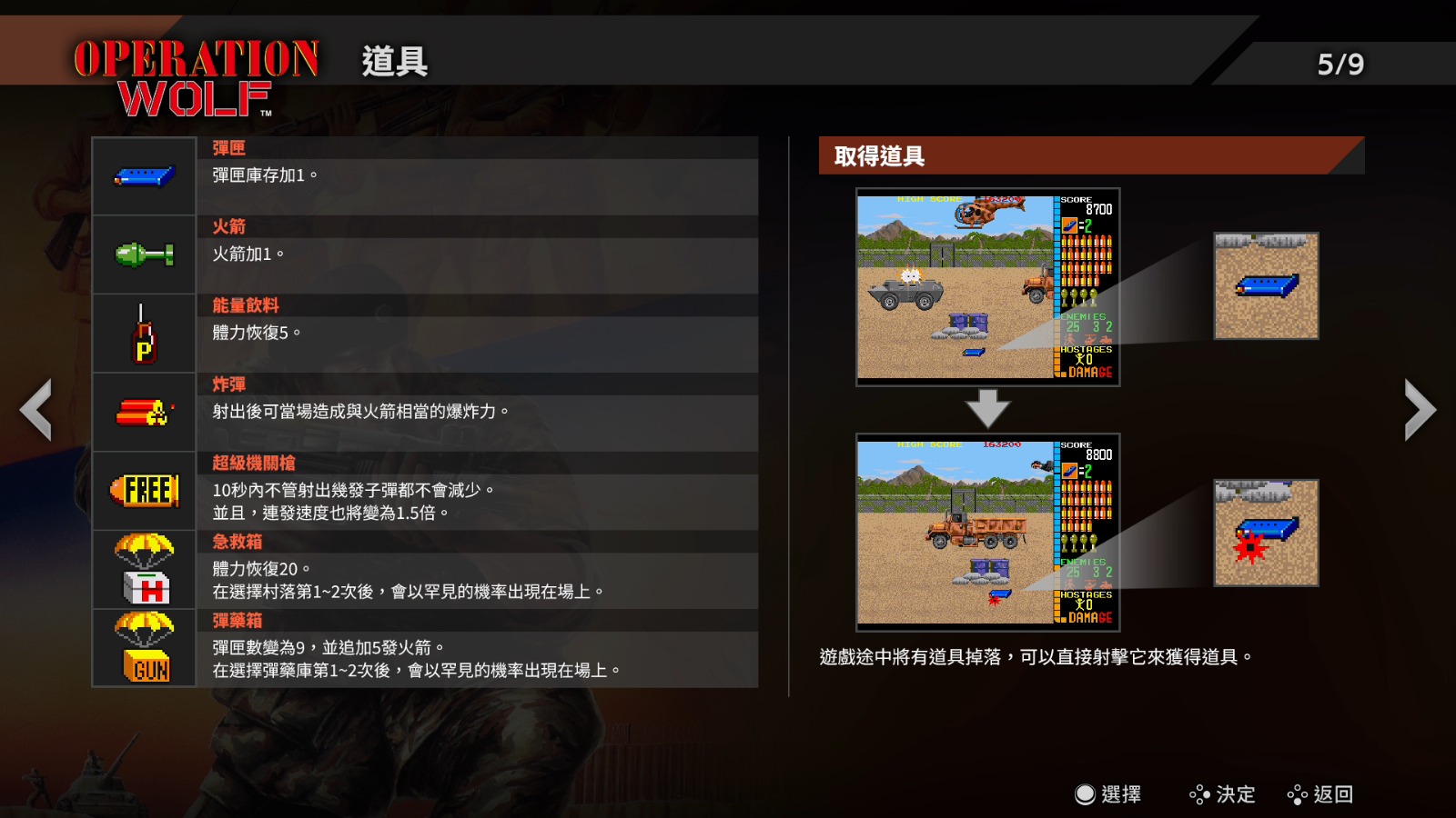 手持連發機槍與火箭筒,單槍匹馬潛入敵軍基地,營救被囚禁於收容所的人質並帶他們逃出生天吧!作戰代號「狼作戰(OPERATION WOLF)」的任務絕不容許失敗!