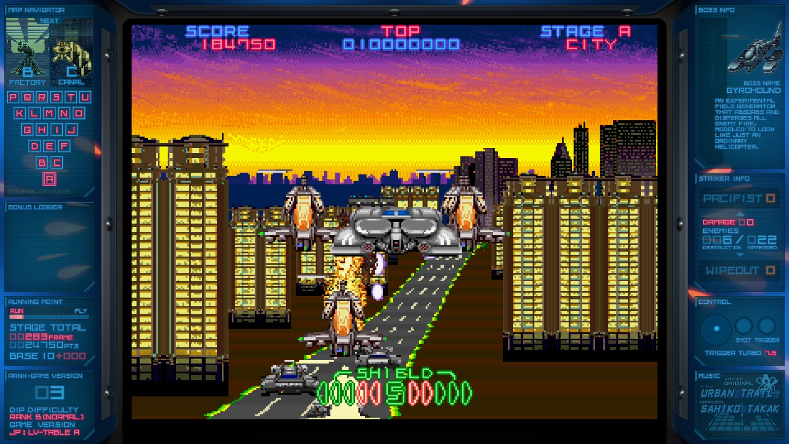 1989 年於街機上發行,採用縱深捲軸的射擊遊戲。成為聯合國特務機關所屬的特別行動部隊,人稱「NIGHT STRIKER」,駕駛高速戰鬥懸浮機「INTERGRAY」,貫穿霓虹閃爍的未來都市,殲滅邪惡的恐怖組織!
