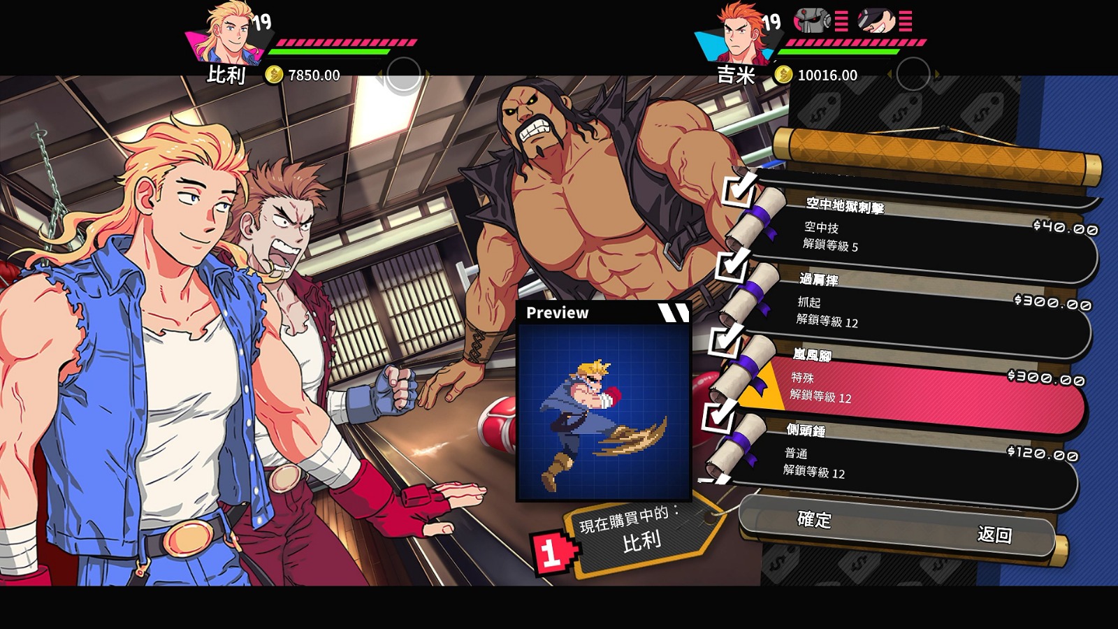 在「雙截龍 DLC」中,《雙截龍》系列永遠的主角「比利」與「吉米」作為可遊玩角色登場。玩家不僅能體驗參考《雙截龍》系列的動作設計所構成的暢快戰鬥動作,還能使用「天殺龍神拳」以及「爆魔龍神腳」等《雙截龍》系列廣為人知的必殺技。此外,人氣配音員興津和幸與子安武人將為李氏兄弟進行日語配音,讓由李氏兄弟視角展開的故事變得更加精采豐富,提升遊玩體驗的品質。