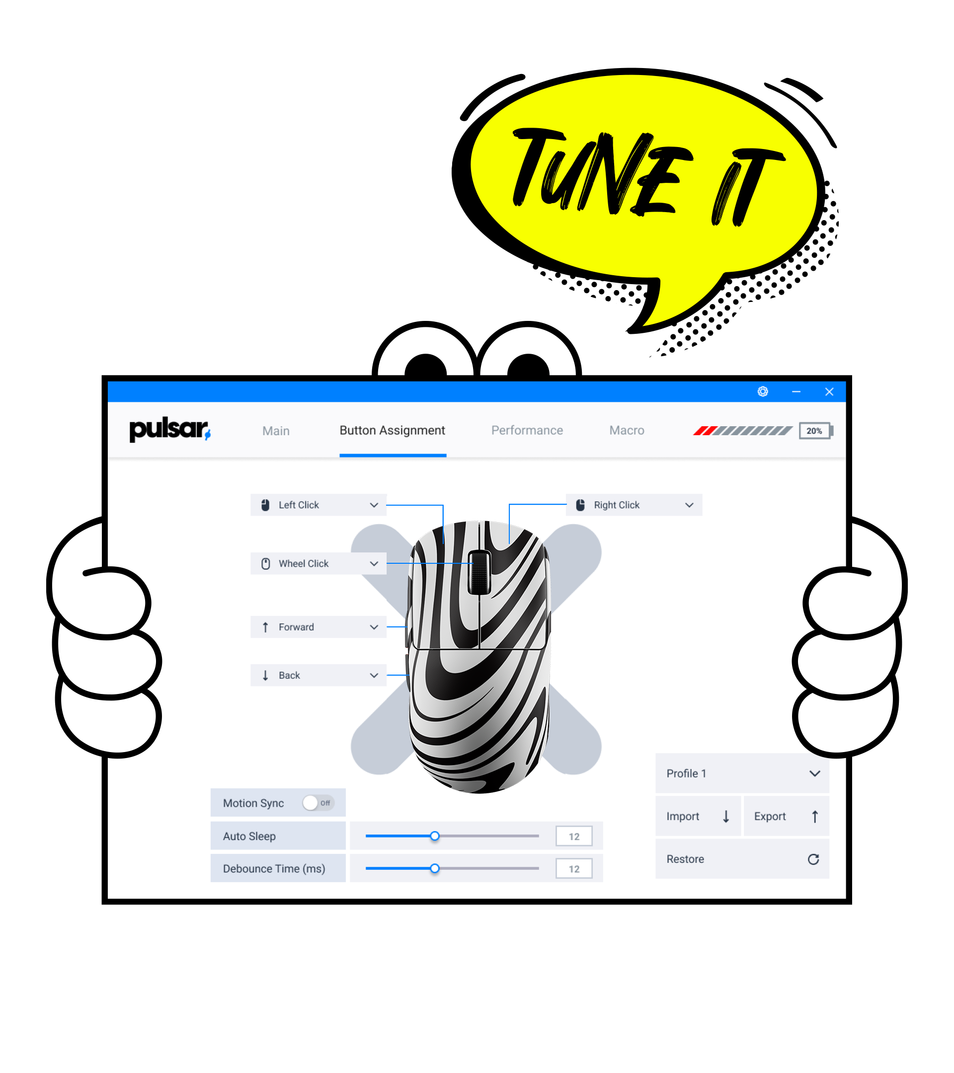 With the X2 CrazyLight's dedicated software, you can adjust DPI, polling rate, and button functions with ease. It’s a straightforward tool to help you optimize your mouse for smooth and responsive gameplay.