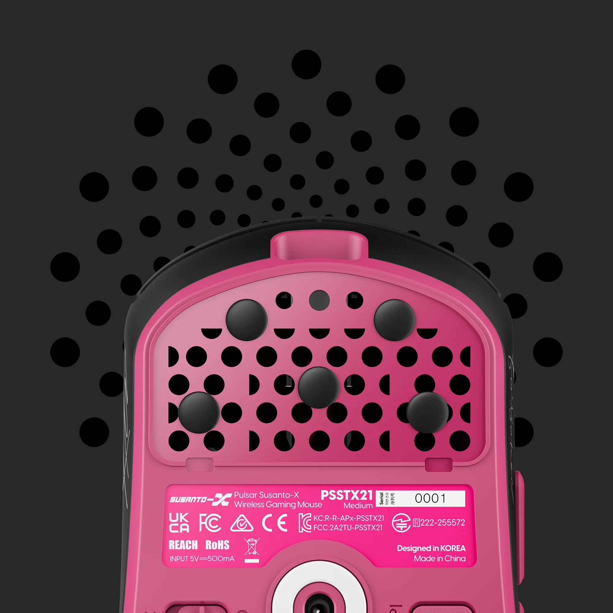 Pulsar 與印尼電競明星兄弟「Xccurate」Kevin Susanto 與「f0rsaken」Jason Susanto 聯手打造的 Susanto-X 特別版電競滑鼠,專為競技表現而生。滑鼠重量僅約 50g,搭載旗艦級 XS-1 感應器,支援高達 32,000 DPI、750 IPS 與 50g 加速度,並具備最高 8K 輪詢率,提供極致精準與即時反應,是職業選手的首選利器。