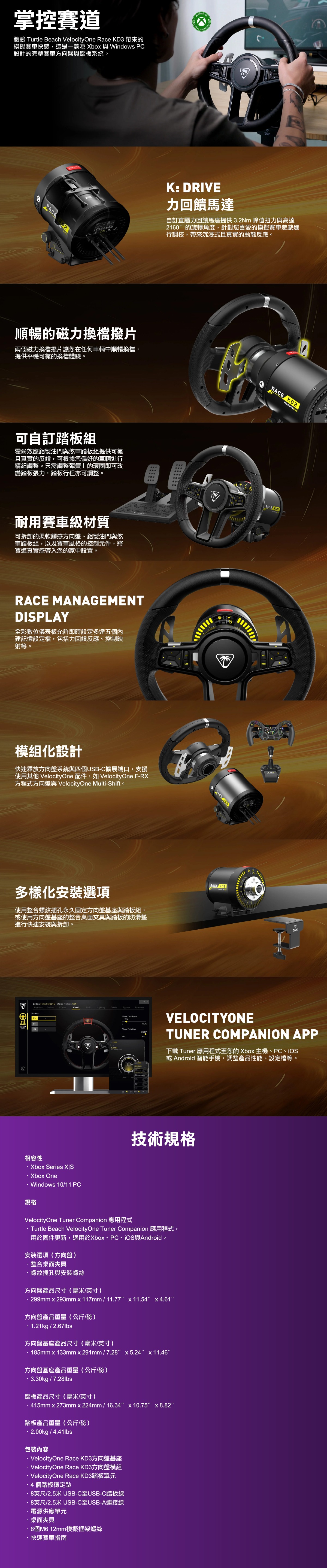 - 支援 Xbox、PC、iOS 和 Android 的 VelocityOne™ Tuner 配套應用程式