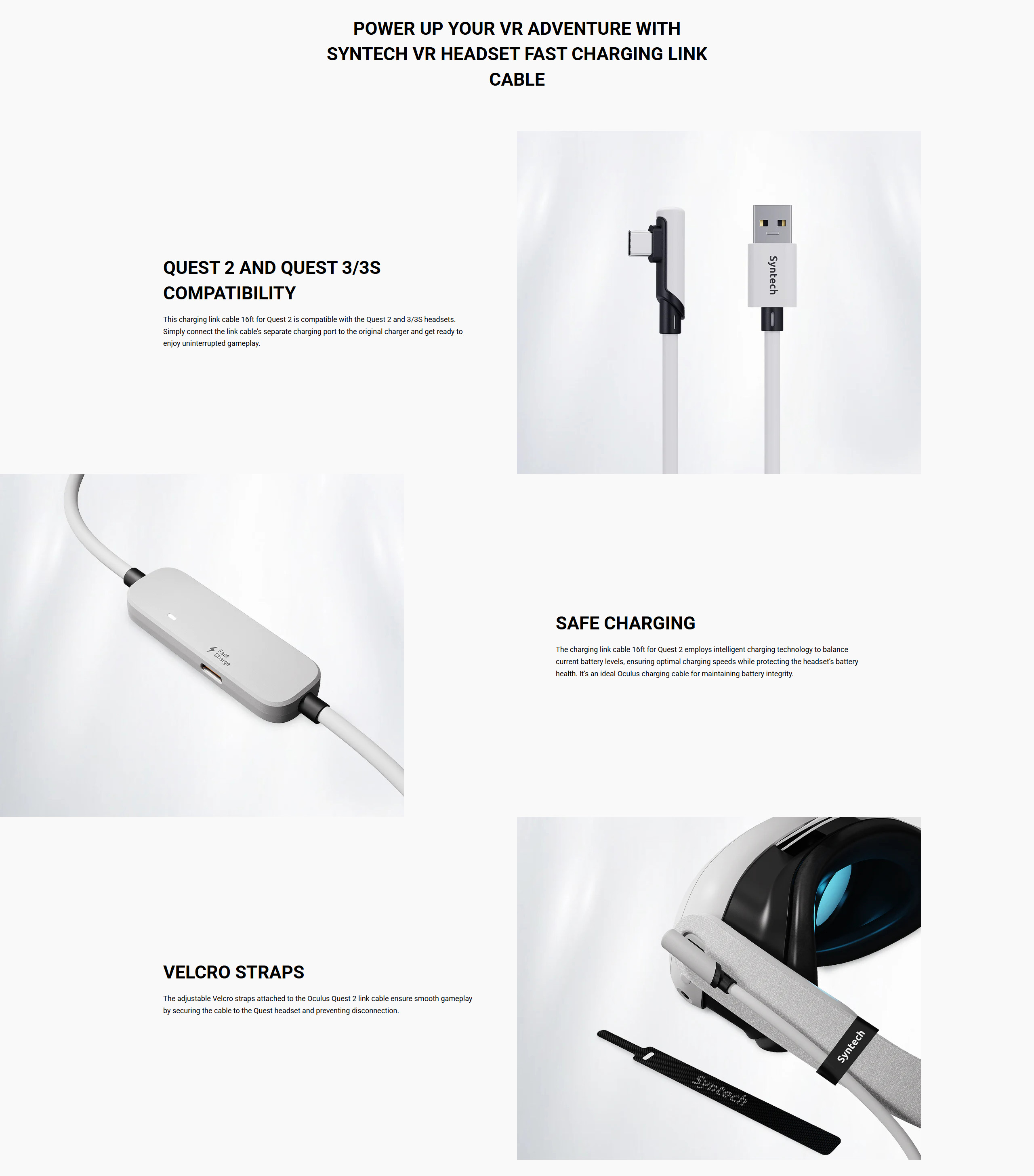 - 智慧電池保護 – 內建安全晶片自動分配電力;於 Quest 3/3S 上,當電量達 65% 後會自動降低充電速度,延長電池壽命。