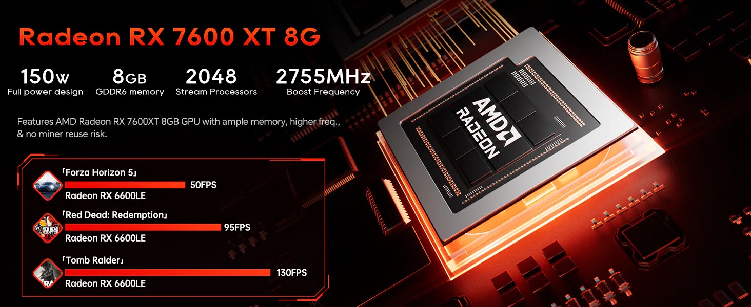 - AMD Radeon™ RX 7600 XT 8GB (150W)