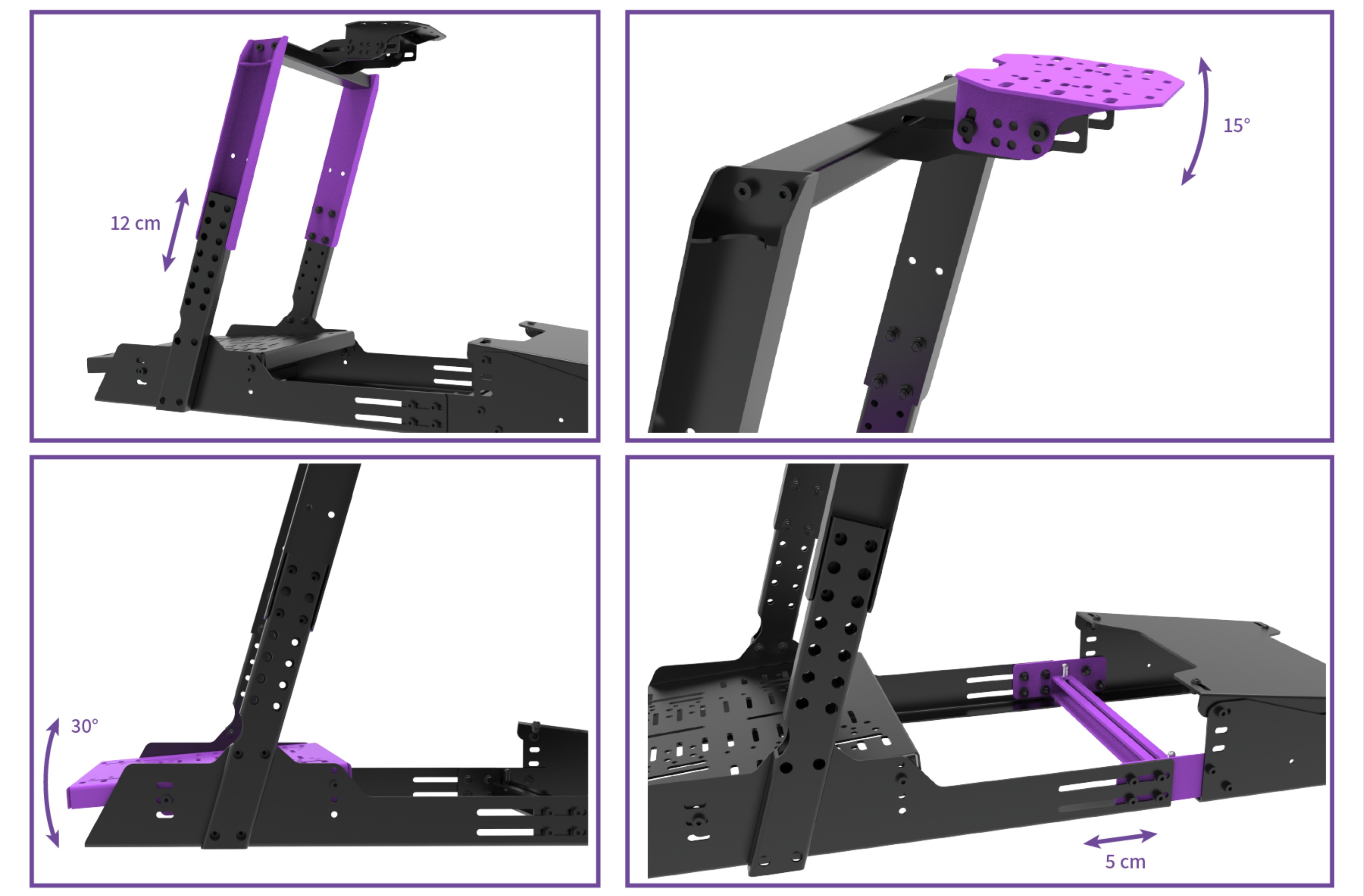 - 辦公椅模式:單獨使用 GT-S 踏板與基座安裝模組,搭配任意辦公椅。模組橫樑上的標準化轉接件可穩固連接,讓你在通用或休閒環境中也能享受賽車樂趣。