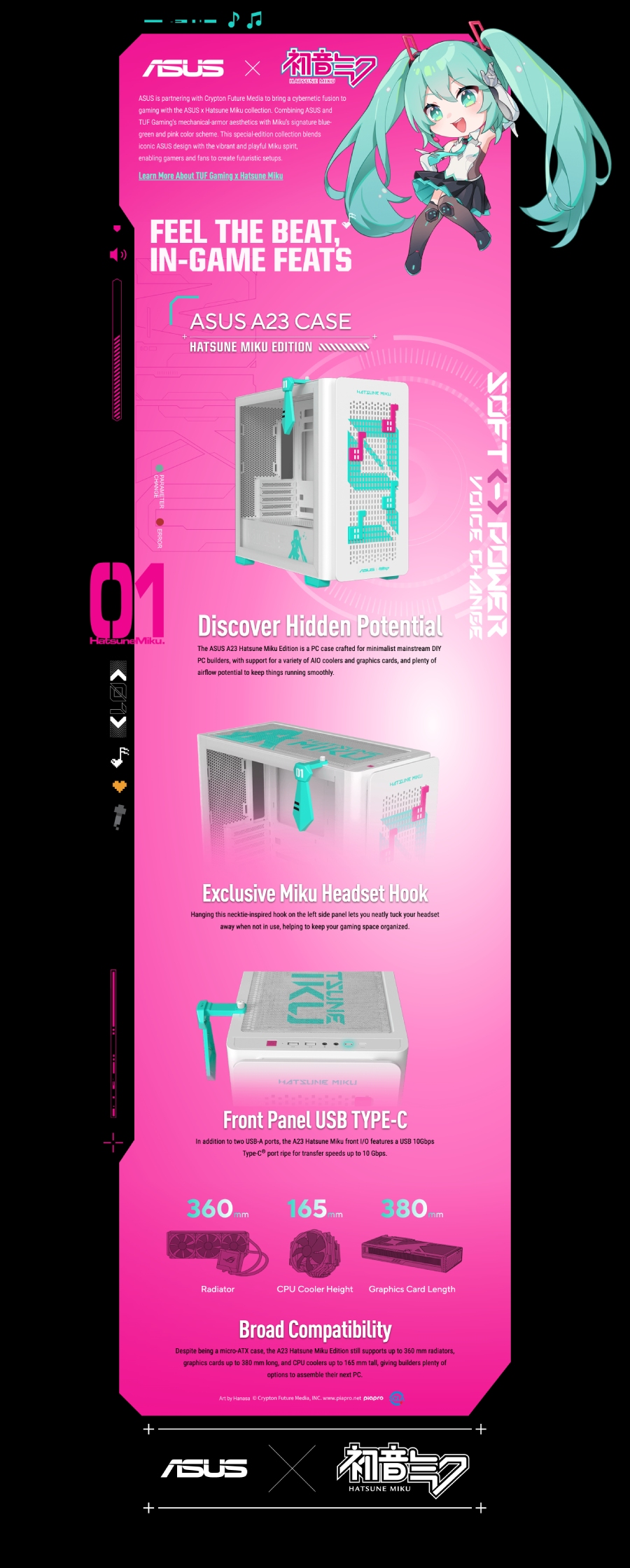 - 廣泛相容性:A23 初音未來聯名版支援最大 360 mm 水冷排、長達 380 mm 的顯示卡,以及高達 165 mm 的 CPU 散熱器
