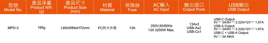 - 可同時為多部設備充電,單個杳槽位最大輸出為20W + 3250W(額定功率)