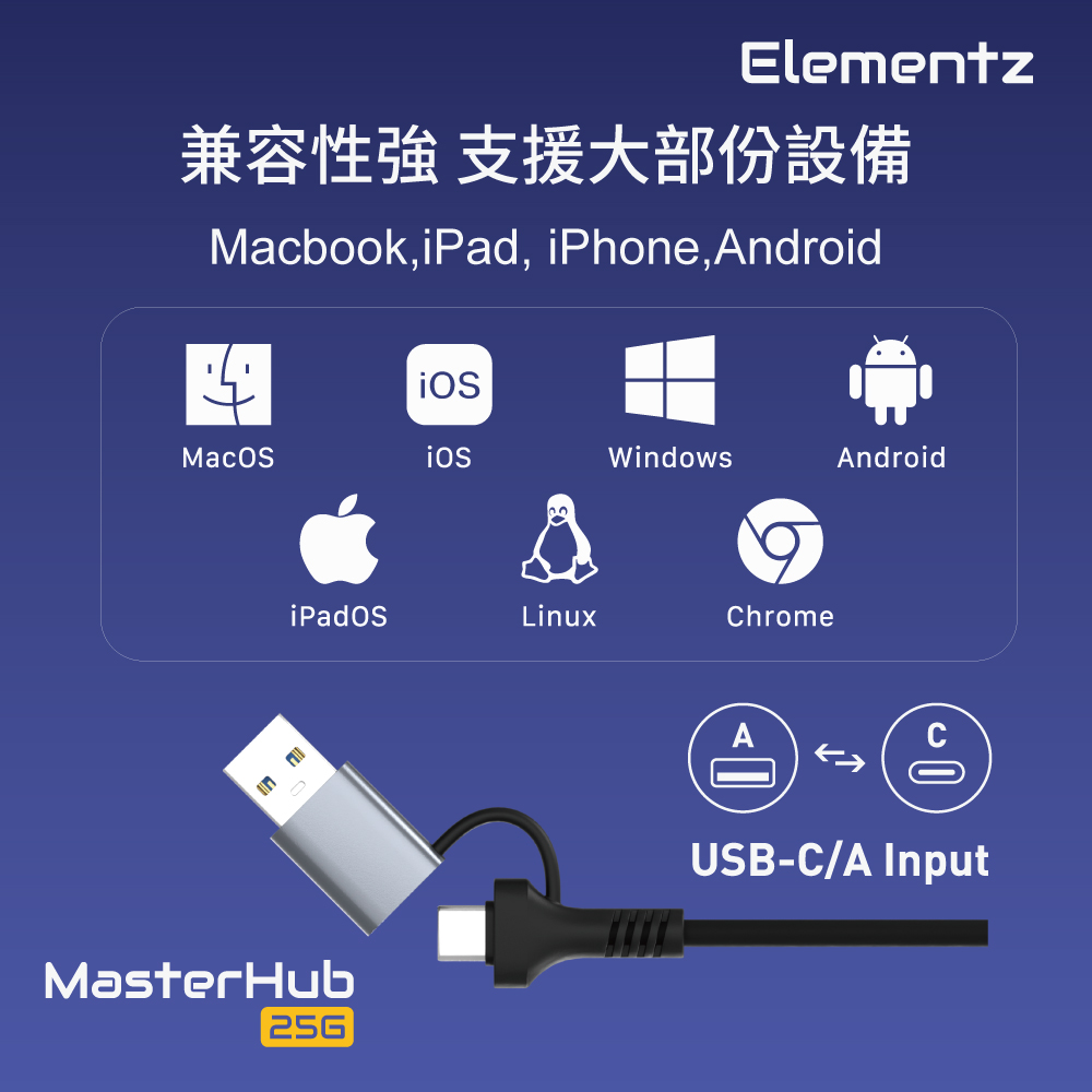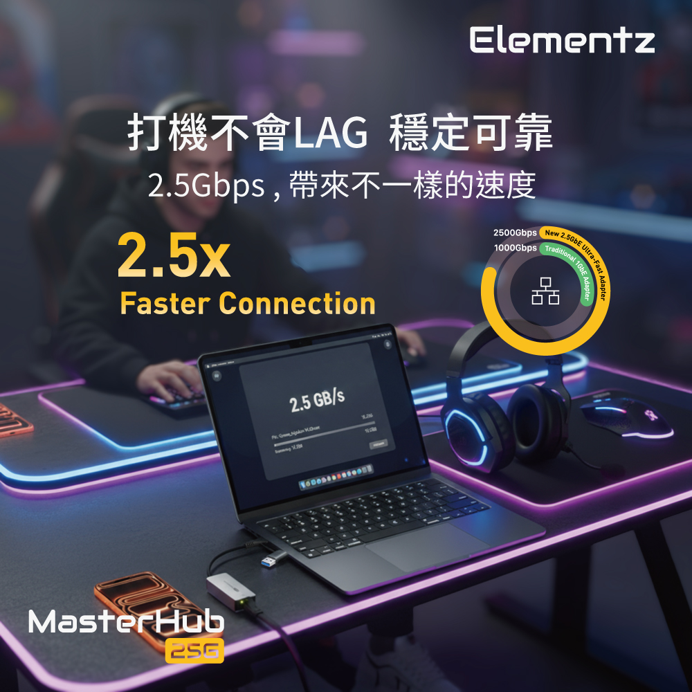 Elementz USB-C/USB-A to 2.5G Lan 轉換器(MF-25G)