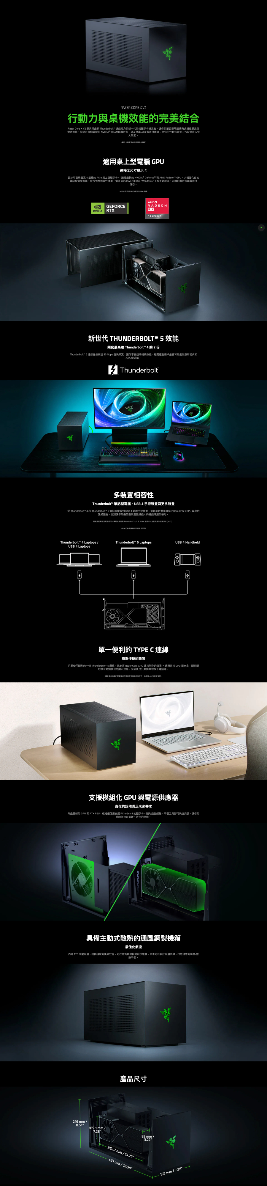 Windows® 11 OS 和 Thunderbolt™ 4、Thunderbolt™ 5 或 USB 4 連接埠,並支援 eGPU