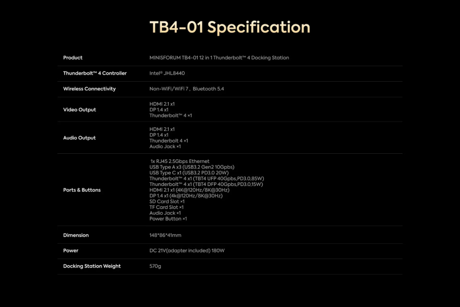 Minisforum TB4-01 12合1 Docking Station 擴展塢