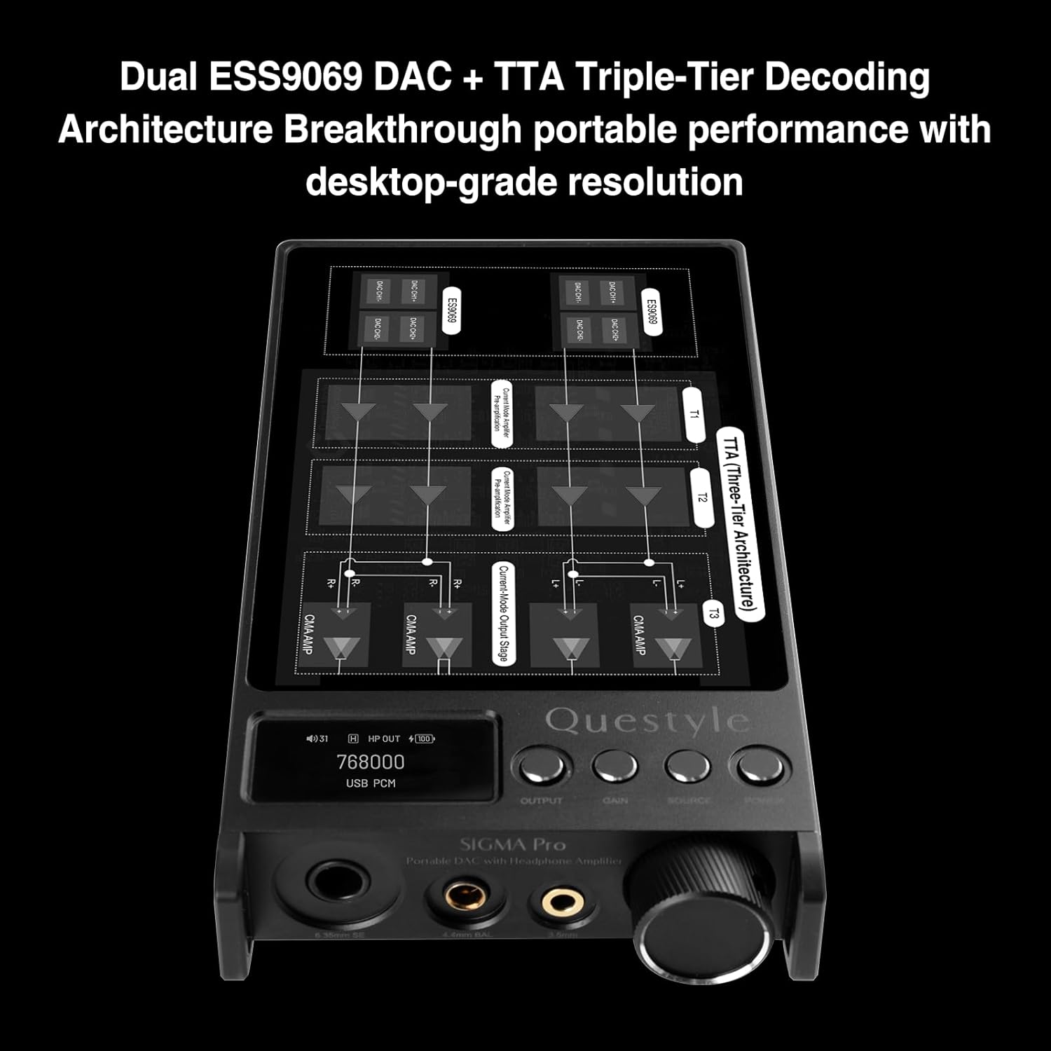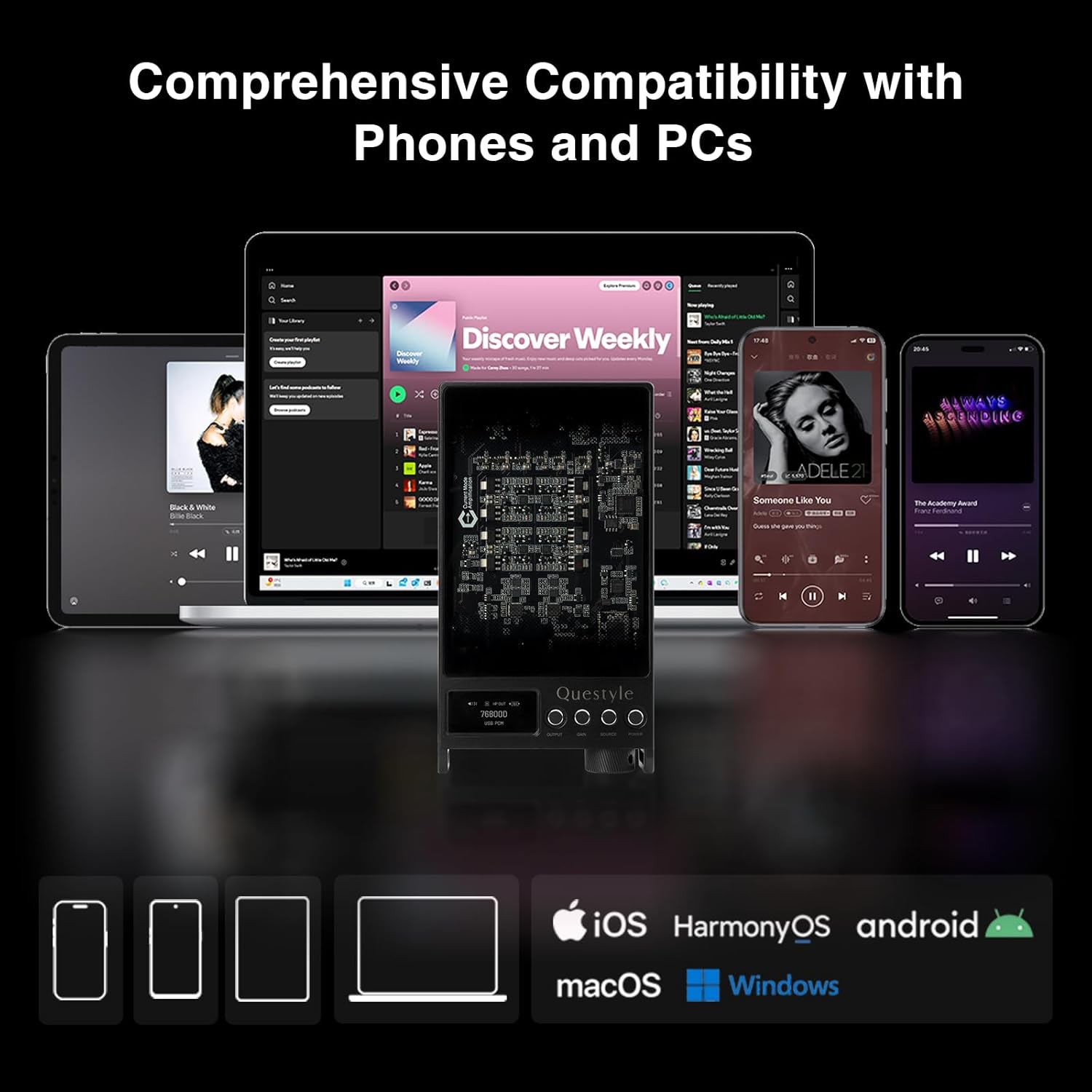 配備高速 USB 介面與無損藍牙,SIGMA Pro 相容 iOS、HarmonyOS、Android 5.1+、Windows 10(免驅動)與 macOS。由 Questyle Lab 精心優化,確保與智慧型手機、電腦及專業音響系統的完美相容。