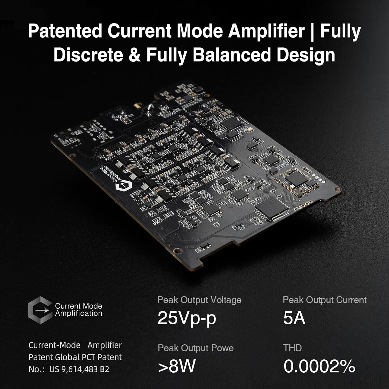 SIGMA Pro 採用專利全離散電流模式放大技術,在口袋大小的機身中展現強大驅動力與精緻音色,實現卓越音質與高效率。全離散電流模式放大器峰值功率達 5W、峰值電流高達 3A,提供強勁驅動力;峰值輸出電壓最高可達 20Vp-p,負載失真低至 0.0002%,同時兼具力量與精準度。