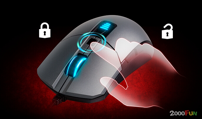 將靈敏度調節以及玩家配置按鍵上鎖,以防止誤觸。只需按住靈敏度調節按鍵3秒鐘,直至LED閃爍代表起動”Lock-down”上鎖,重覆上述動作即可解鎖。