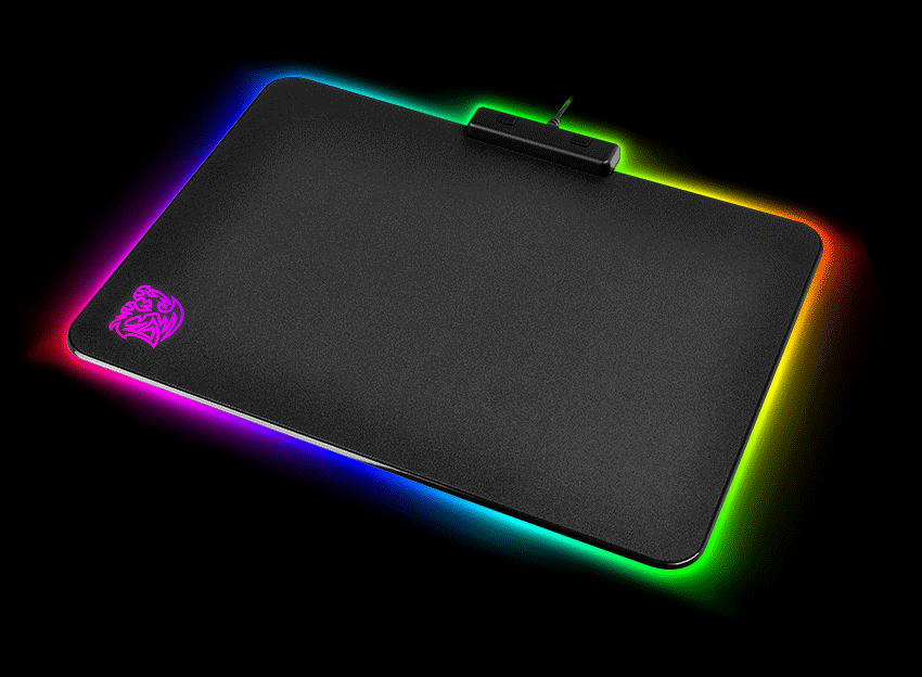 聖龍麟全彩電競滑鼠墊結合全彩炫光效果於側邊,當其矽膠底部穩固固定於桌面時,由中央四射而出的炫亮光彩折射於桌面材質上,表現出簡單大方的美感,讓滑鼠墊不再只是滑鼠墊,玩家能藉由簡單的雙鍵操控輕鬆玩色。