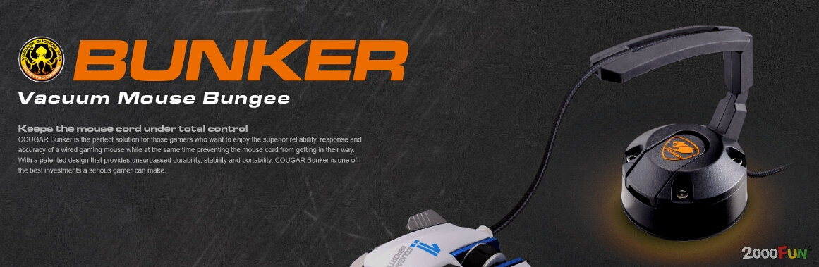 COUGAR Bunker 是針對想要享受有線電競滑鼠的極佳穩定性、反應性、與精準性的玩家們的最佳選擇。同時,也能避免滑鼠線材干擾玩家在遊戲中的行動。
