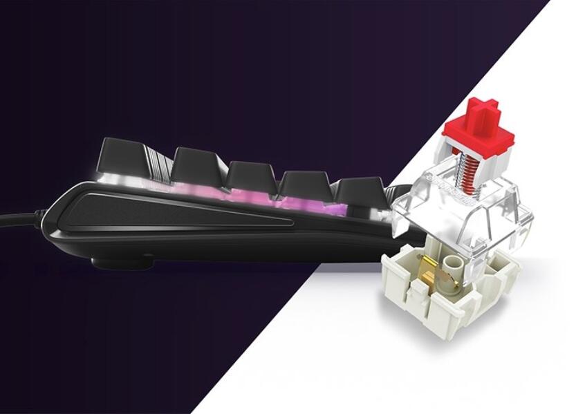 具有銅製點擊片、透明外殼與 DURACON® 熱塑性主幹,帶給您平滑順暢的線性操作。其 45cN 力道與 2 公釐的啟動點正是在尋找極致快速反應時間玩家的最終夢想。保證 5 千萬次按鍵動作,終生耐用。