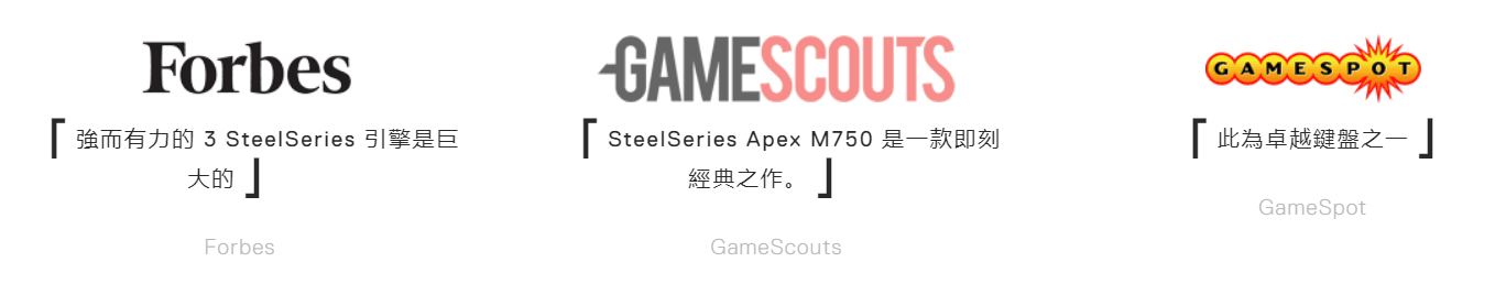 Apex M750 結合了廣受歡迎的照明效果以及關鍵的遊戲內通知,外加平滑時尚的鋁製結構與耐用的 SteelSeries QX2 機械式按鍵。
