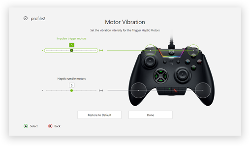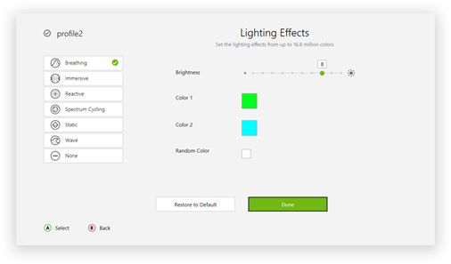 Razer Chroma 提供大量燈光效果和奪目設定檔,並能透過 Xbox 版 Razer Synapse 完全自訂。