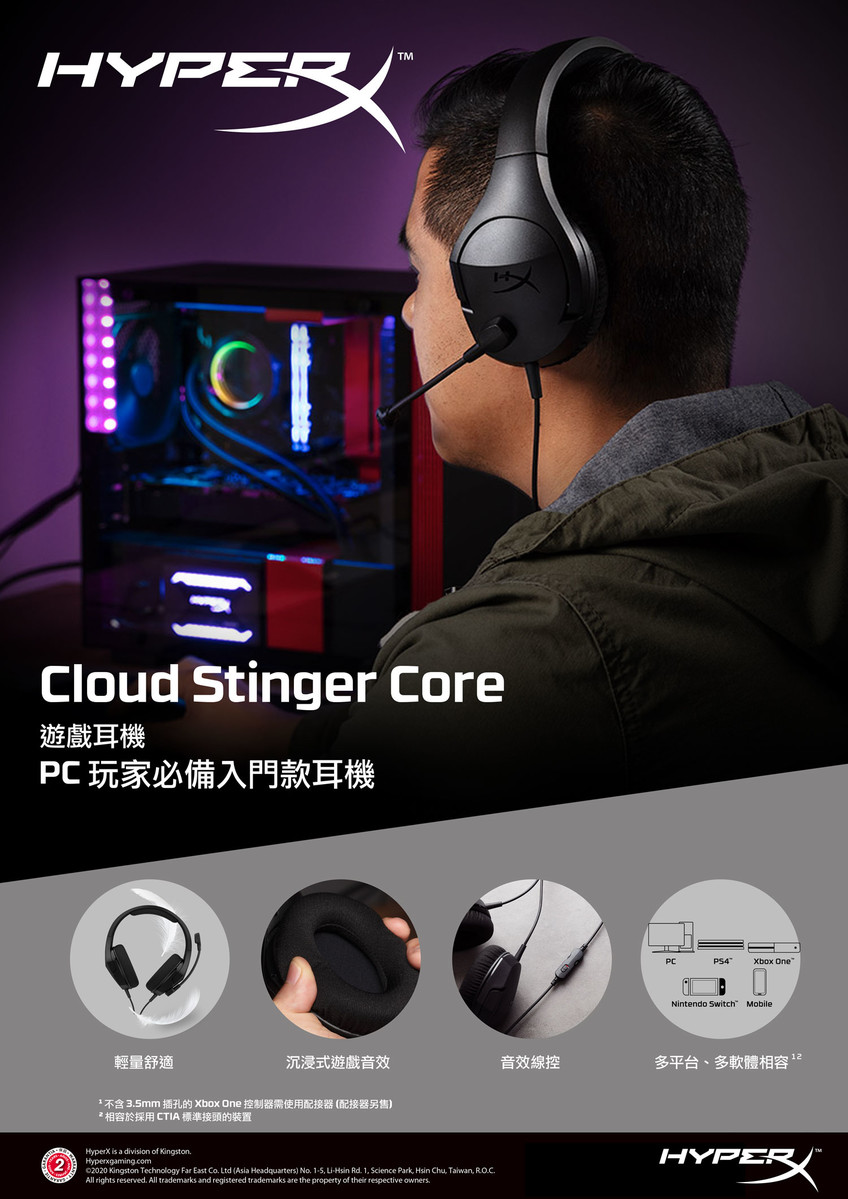 Cloud Stinger Core 適用各種家用主機,並且配備音效線控。