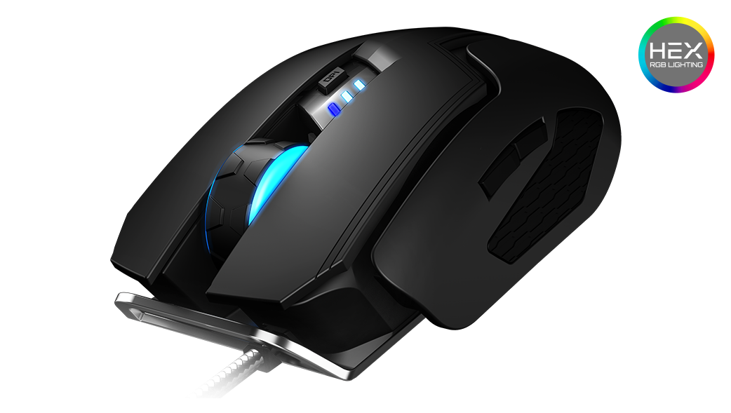 Designed for right-handed gamers, rise to the challenge with a choice of interchangeable panel that helps improve control and grip. For those palm grippers, the wide scroll wheel will perfectly align with your hand ensuring a much more comfortable hold on the mouse. Adjust your settings and set up to 7200DPI. A brushed aluminum base acts as counterweight ensuring your mouse stays where you need it. Adjust your mouse settings using the software included. Stylize and personalize your mouse and gameplay experience with 16.8 million colors to choose from.